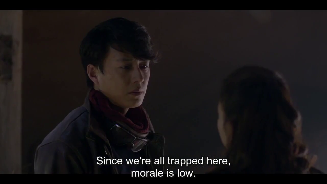Bayi is sitting by the opening, and I wonder why no sand blows into the building? Anyway, Shirley comes over to him and offers to relieve him. He says he's fine, and she sits down and says thank you. Bayi is surprised and says, what? She says, nothing. and then her thanks register with Bayi who says, you're welcome. Shirley snarks that means you heard, but Bayi just was too surprised before. Cute Bayi. But to be honest, I also get annoyed when people say "what?" when they've heard. Anyway, Shirley's a bit miffed, which is also cute.